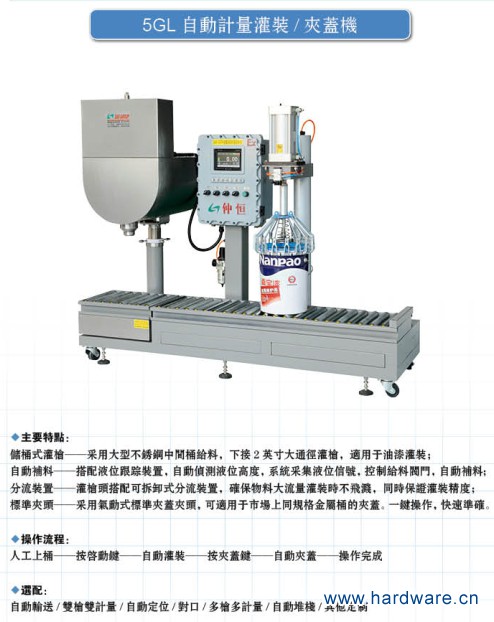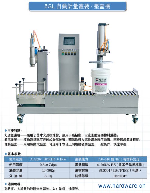 5GL自动计量灌装机应用/压盖机/夹盖机/长管式