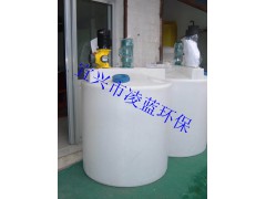 在水处理工程中加药箱主要用于各种药剂的搅拌、溶解、储存,再通过计量泵或水射器将药液投加到各投加点。加药箱外形分为方形和圆形,材质为聚乙烯(PE),通过滚塑技术一次成型,上部预设了计量泵及搅拌机的安装位置,搅拌机、加药箱、计量泵三合一,使用非常方便。