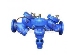 倒流防止器根据我国目前的供水管网,尤其是生活饮用水管道回流污染严重,又无有效防止回流污染装置的情况下,研制的一种严格限定管道中水只能单向流动的水力控制组合装置,它的功能是在任何工况下防止管道中的介质倒流,以达到避免倒流污染的目的。同时倒流防止器,也称为防污隔断阀。目前倒流防止器主要分为低阻力倒流防止器和减压型倒流防止器两类,按国家标准低阻力倒流防止器的水头损失小于3米,减压型倒流防止器的水头损失小于7米。