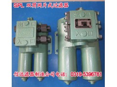 网片式油滤器分为SPL双筒系列和DPL单筒系列,该产品运行可靠,维修方便,不需要其他动力源,过滤元件为金属丝网制成的滤片,具有强度高,通油能力大,确保过滤精度,便于清洗等特点,SPL双筒系列能在主机运行过程中实现不停机转换和清洗。