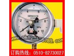 国际品质,支持国货,要用就用中国人自己的!具有抗介质脉动和冲击载荷,耐环境振动等优异特性,适用测量对铜和铜合金无腐蚀性的气体,液体或蒸 汽等压力。仪表设上、下限二位开关型接点装置,在压力达到设定值时发出信号或通断控制电路,供作业系统自动控制或发讯用。其抗振结构可有效抑制指针的抖动、冲击,保护接点,使仪表指示清晰,电信号切换可靠,工作稳定。广泛应用于机械、化工、石油、冶金、电力等工业生产过程。电接点压力表的工作原理是基于测量系统中的弹簧管在被测介质的压力作用下,追使弹簧管之末端产生相应的弹性变形一位移,借助拉杆经齿轮传动机构的传动并予放大,由固定齿轮上的指示(连同触头)逐将被测值在度盘上指示出来。与此同时,当其与设定指针上的触头(上限或下限)相接触(动断或动合)的瞬时,致使控制系统中的电路得以断开或接通,以达到自动控制和发信报警的目的。 本公司可根据用户需要,设计、制造特殊用途的压力表产品,欢迎来人来电、来函洽谈!