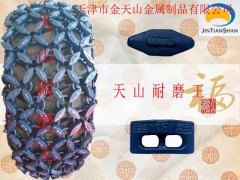 耐磨王(菱形链节,天山专利品):这是我公司研发生产的具有超耐磨强度的保护链,它的链条主节可达到18mm厚,它的整体设计与普通型有较大差别如材质;热处理;结构等,产品现已为上海龙工集团作为ZL50型装载机出口配套产品。这种链条应用于环境较为恶劣的矿山、采石场及隧道施工等。虽然价格比加强型略高一些,但使用寿命一般要比同样作业环境下的加强型保护链长出2倍甚至更长的时间,所以这是一款性价比较高的产品。