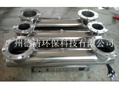 各种工业和民用的需要杀菌消毒的给水和排水、景观水、游泳池等。五、产品特点 1、杀菌速度快,不改变水的物理、化学性质,不增加水的嗅味,不产生对人体有害的卤代甲烷化合物,无负作用。 2、处理筒体采用进口优质不锈钢,可满足0.6MPa的工作压力,具有防锈、强度高、无金属离子污染、设备表面易于清洁等优点。 3、紫外线灯选用国家卫生部门、防疫部门鉴定的专业新产品,低压30W,主线谱253.7nm,此波长的紫外线杀菌率Z高,可达98%以上,耗能低,连续使用寿命可达3000小时以上,并配有可靠的镇流装置。 4、模块化电控装置,功能齐全,定时准确,与水处理筒体采用一体化设计,具有安装方便,操作简单,安全可靠,便于维护等特点。