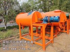 干粉砂浆混合机以高效、快速混合物料、在搅拌轴的螺旋带运动下,使内外螺旋带在较大范围内翻动物料,内螺旋带将物料向两侧运动,外螺旋带将物料由两侧向内运动,使物料来回掺混,另部分物料被螺旋带推动下,沿轴向径向运动,从而形成对流循环。由于上述运动的搅拌,物料在较短时间内获得快速均匀混合。