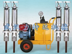 凿岩机打孔时,每台液压劈裂机需配二台,以提高液压劈裂机的生产效率。在预先钻好的孔内放人单头液压劈裂器,启动电机,当液压缸活塞杆推动楔块向下运动时,注意观察,当看到石材沿孔口出那裂纹时也可以从压力表上观察,当压力升高到一定值咐突然卞降换向阀换向,这时楔块反向运动,当其复位后将劈裂器转动一个角度,重复上述劈裂过程,这样可以在一个孔内进行多方向劈裂,将石材劈裂成多块,减少钻孔的工作量。