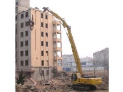 3) 挖掘机改装拆楼机三段式加长臂前置液压剪,低噪音、高效率、低排放,该机械的施工噪音和尾气排放处于国际先进水平,达到国际通用的相关标准,Z适宜在居民集中、施工场地狭窄、噪声要求严格的区域施工; 4)三段式加长臂配备液压剪:安全,操作灵活,功能稳定,是绿色环保型拆除机械,根据改装长度20—30米,可直接拆除10层以下楼房,既可避免人工拆除高层建筑物的危险性又保证了拆除的可操作性。