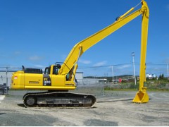 25-34吨位挖掘机加长臂,可加长到20米,其配置为:挖斗1个、铲斗油缸1支、销轴6支、 高压软管4条、黄油管3条、连杆总成1套、运输连杆1套、加长大臂(11米)、加长小臂(9米)。