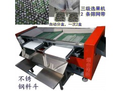 新型三等级蓝莓筛选机,在通用四等级蓝莓选果机基础上,减少一级,变为三等级选果,即2条筛网带,尺寸一般为12、15mm,也可以13、16mm,其它尺寸均可定制,这种新式小型蓝莓选果机,将设备缩短化,小巧方便灵活,适合广大用户对蓝莓选果机的需求,分选不伤果粉。