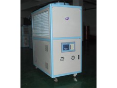 精密机械油冷机的工作原理是利用氟利昂(R22.R404)制冷机组对热油进行冷却,工作时,油泵从机床油箱里抽取油液至蒸发器中进行换热,冷却后的油液从冷却机出口输出,送回油箱与热油混合,油液的连续循环使得整个油箱的温度降低。冷却机的温度控制器通过温度传感器自动控制机组的开闭,使得油温自动恒定在设定的温度上。