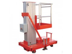 铝合金升降机展示图。产品分为单柱式、双柱式、三柱式升降机及多柱式等。升高高度在8米以下为单跪柱式,在10米到14米之间为双跪柱式,15米到18米之间则升为三跪柱式或四跪柱式。通过铝合金跪柱的增加达到设备在高空的稳定性,保证作业安全,减小设备晃动的幅度,使高空作业更加平稳。整体采用高强度铝型材精制而成,由于型材强度高,同样也使升降机的台面偏转与摆动极小。该升降机配备了中德合资的液压泵站,该泵站为压铸铝集成阀块,结构紧凑,系统压力 16MPa,选用进口密封件的精磨高压液压油缸作为主要升降动力,经过液压泵站带动链条传动,结构合理,设计紧凑。该升降机下降速度可自调,而且设备设有手动下降装置,保证在停电时的正常工作;设有应急停运按钮;台面设有防滑绝缘扣板,更换方便,易于清洁,维修方便,有效保障工作安全可靠,保证使用人员的绝对安全。外形美观,整体轻盈,能在极小的空间内发挥Z高的举升功能,广泛适用于工厂、酒店、宾馆、商场、超市、体育场、车站、电厂等电力线路、照明电器、高架管道等安装维护,高空清洁。可根据客户要求加装蓄电池以满足客户工作场地的不同要求。