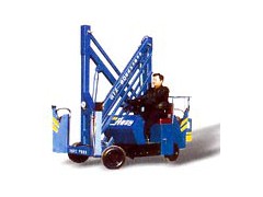 曲臂式升降平台,升降机的结构展示图。其采用了机电液一体化、可靠性设计和计算机辅助设计等技术,是一种全液压驱动、自行式专用底盘突破了以往国内高空作业升降只能采用汽车或起重机底盘改装设计的限制。带载行驶、作业稳定性好。底盘结构突破了传统的设计理论和方法,通过优化上车平台总体布局与载荷分布,减少了重心偏移。采用独特的大角度后仰式铰点结构,合理设置多种配重模块,有效地平衡了工作力矩。采用H型变截面复合箱梁剐性车架和高负荷橡胶轮胎,增加了底盘整体刚度,保证了整机行驶、作业过程的稳定性实现了高空作业升降带载行驶的功能。通过大臂前端托架可以快速安装举升装置或载人平台,实现物料举升、起重吊装和载人高空作业等功能同时为扩展作业装置以及各种工作装置的快速切换提供了接口。设计的三维旋转托举装置,既能够自动保持被举升物料的姿态,又可以实现举升物料在空间内任意高度、任意位置和任意方向的调整要求,速度控制精确灵敏,微动性能好,满足了大型洞库内高空作业与通风管道安装的要求。利用柴油机或电瓶驱动,灵活方便,广泛用于市政、电力、路灯、公路、码头、广告、园林、小区物业、厂矿企业车间等行业的大范围升降作业。