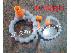 美国LOC-LINE万向喷水管用于普通车床 数控机床 火花机 等各种机械设备的冷却系统,长短可以组装,一般应用机械冷卻,清洗;输送润滑油、润滑剂;冷卻链条、设备配件、线割及相关机器的热量疏散;传动设备的润滑;加工中心冷却;是美国LOC-LINE公司研究生产,LOC-LINE竹节喷嘴是液体及气体媒质的综合引系统,它的各个节使用精密的注塑工艺制成,其各节点连接接触曲面经过精确的计算并使用很高的注塑技术制造而成。因此可调塑料冷却管无需加任何导管,仅告自身接触曲面即可有极好的密封性。其接触面的紧密配合足以保证在高压水的冲击作用下,冷却水管始终保持其初始位置不变。因此,可调塑料冷却管为真正意义上的模块式结构,不但可根据需要任意增加或减少节数,并且可以在各节间根据需要加装开关,且有不同的连接与出水。