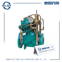 进口多功能水泵控制阀是安装在高层建筑给水系统以及其他给水系统的水泵出口处、防止介质倒流、水锤及水击现象的智能型阀门。该阀兼具电动阀、逆止阀和水锤消除器三种功能,可有效的提高供水系统的安全可靠性。并将缓开、速闭、缓闭消除水锤的技术原理一体化,防止开泵水锤和停泵水锤的产生。只需操作水泵电机启闭按扭,阀门即可按照水泵操作规程自动实现启闭,流量大、压力损失小。