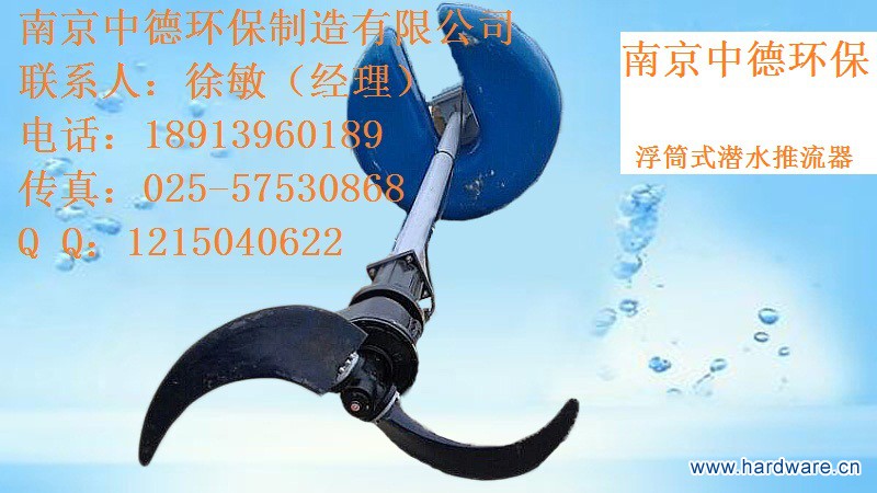 将导杆和浮筒按要求用螺钉固定好,潜水搅拌机应安装中心偏后(开口)位置,已保证运行时设备不会翘头,将滑套套入方型导杆中,搅拌机就位在限位架上,点动开关,确保电机叶轮正转后,方可开启运转!