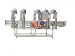 震动风干机为新型的蔬果除水设备,主要用于清洗后果蔬的表面除水,震动吹干机改变了传统离心脱水机带来的蔬菜叶子损伤和传统吹干机的除水不彻底等问题,蔬果切割后清洗后进入震动风干机,在震动频率下使物料向前传送,在传送过程中经过多次强风吹落物料表面的多余水分,使其蔬果表面无水鲜亮。