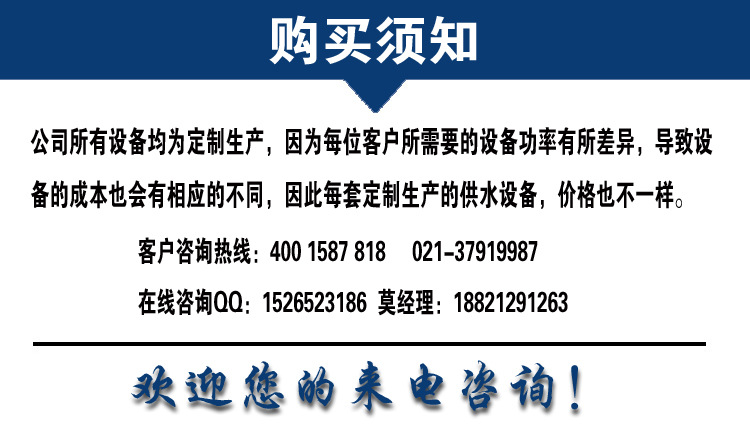 超过许可吸水压力和流量时可在自来水管网压力基础上增压。与从普通蓄水池吸水相比运行时可减少水泵台数或(和)降低转速达到节能目的。