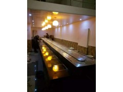 是我公司自创开发的一种新型菜料自动输送设备,输送长度可根据客户的场地造型尺寸定做,输送链板采用304不锈钢制造,具有美观、清洁、卫生,输送方向,速度任意可调,是各种自助火锅,自助早餐的新型时尚的设备。传动部分采用台湾产(城邦牌)2HP-1500W变频减速电机,速比1:100,变频器采用220V,2HP-1500W.SE系列,线速2-8米/分钟 可调。专为大中小型餐饮连锁企业量身定做,适应了饮食界推陈出新,适应了现代人对饮食新奇的追求,必会掀起都市饮食新潮。