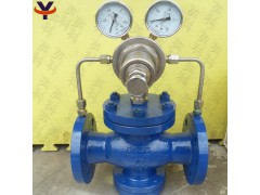 气体减压阀主要用于气体管路,如空气、氮气、氧气、氢气、煤气、液化气、天然气等气体。本系列减压阀属于先导活塞式减压阀。由主阀和导阀两部分组成。主阀主要由阀座、主阀盘、活塞、弹簧等零件组成。导阀主要由阀座、阀瓣、膜片、弹簧、调节弹簧等零件组成。通过调节调节弹簧压力设定出口压力、利用膜片传感出口压力变化,通过导阀启闭驱动活塞调节主阀节流部位过流面积的大小,实现减压稳压功能。