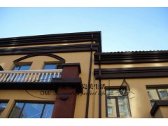 落水系统可以分为几个步骤,每一部分都需要认真的安装。檐沟:1.固定檐沟的膨胀螺钉,进入水泥屋檐面的深度不应小于40mm;2.每0.6m檐沟由一个吊件固定,同时保证阴阳角、立管、端头等节点处,有吊件固定;3.檐沟搭接不小于30mm