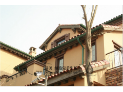 落水系统可以分为几个步骤,每一部分都需要认真的安装。檐沟:1.固定檐沟的膨胀螺钉,进入水泥屋檐面的深度不应小于40mm;2.每0.6m檐沟由一个吊件固定,同时保证阴阳角、立管、端头等节点处,有吊件固定;3.檐沟搭接不小于30mm
