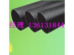 钢带波纹管又叫钢带增强聚乙烯螺旋波纹管是一种以高密度聚乙烯(PE)为基体(内外层)与表面涂敷粘接树脂钢带复合的缠绕结构壁管。管壁结构由三层构成:内层是一个连续实壁PE内层管,内层管外缠绕有(用钢板成形为“V”型的)环形波状钢带增强体,在波状钢带增强体外复合有聚乙烯的外层,从而复合成整体的螺旋波纹管。其典型的结构如图所示。钢的弹性模量是聚乙烯的近200倍(碳素钢的弹性模量在190000 MPa左右),结合金属和塑料的优点显然是达到高刚度低消耗的理想办法,能够将钢材的高刚度、高强度和塑料的耐腐蚀、耐磨损和柔韧性等优良特性有机地结合起来,发挥两方面的优点,弥补两方面的缺点,实现高性能和低成本的统一。