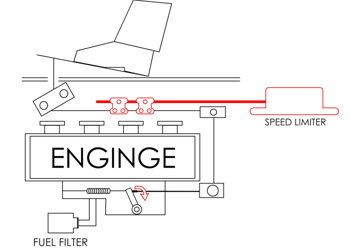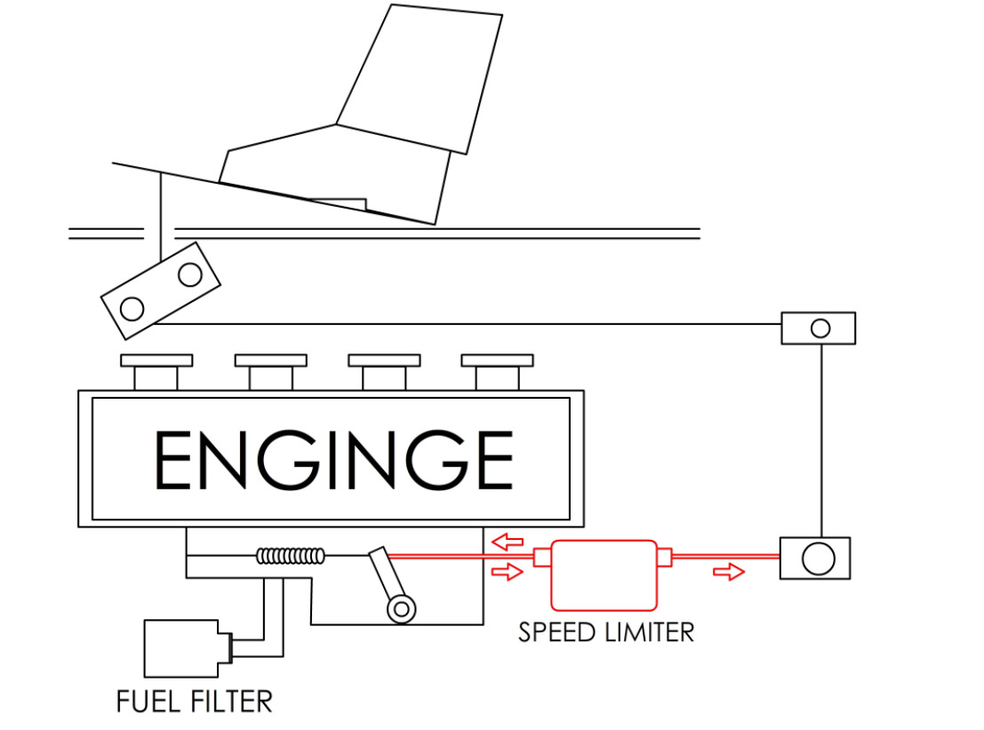 电子控制单元(ECU)控制电磁阀,并控制流向发动机的燃料量把速度限制在预设值之内。