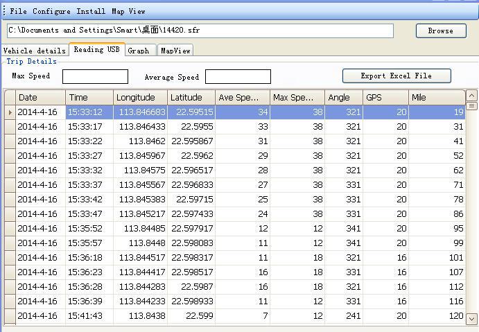 限速器具有记录车辆行驶过程中的状态信息,当U盘为空,车辆行驶速度为0时,U盘插入限速器的USB口后,会导出年月日.SRF文件格式的历史数据,或供管理部门分析司机行为。
