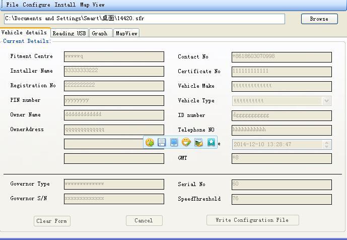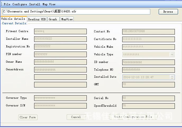 所有限速参数及用户信息,由客户自己配置。当所有的参数配置好后把文件放入U盘里,此时U盘通过USB口把信息写录到限速器的存储空间里,待蜂鸣器提示三声后说明设备配置成功,至此设备可正常工作了。
