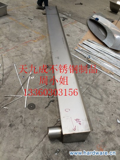 6、将雨水槽放置在已弹线位置,调整好“吊接器”间距,然后用∮4X40的不锈钢镙丝将吊接器和雨水槽固定