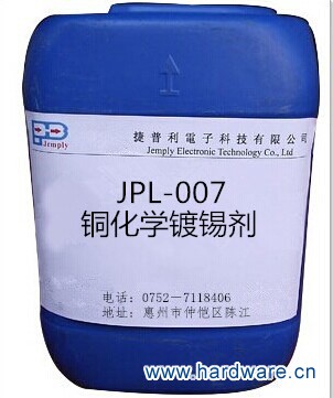 捷普利生产的铜面镀锡剂,完全环保,符合欧盟的 ROHS 的标准,可快速在铜面获得光亮银白色锡镀层,用于紫铜,黄铜,铍铜等铜合金表面进行化学镀锡,不影响焊接性和导电性,耐磨性好,常温浸泡反复使用,详细咨询 张先生:13480836153
