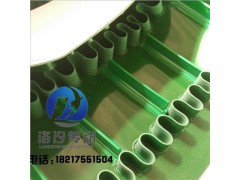 绿色/白色裙边挡板pvc输送带:上覆盖胶厚度一般为3-6mm; 下覆盖胶厚度一般为1.5-4.5mm。