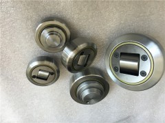 我公司提供范围广泛的物流传送装置使用的复合滚轮轴承。复合滚轮轴承—combined bearing, 又称组合滚轮轴承,Z早是由欧洲人设计出来的。复合滚轮轴承是由轴向和径向两个滚轮轴承组装而成的,减小轴承体积,简化安装结构,从而降低了制造成本。复合滚轮轴承径向和轴向的承载能力都比较大,各配件可替换性强,越来越多的应用在各种门架升降系统中。 一、复合滚轮轴承主要由以下几部分组成: 1、轴头 复合滚轮轴承的安装方式是焊接,具体方式就是把轴头和一块带有圆孔的板焊接,然后再和门架组装; 2、主滚轮 主滚轮是复合滚轮轴承中主要的承载体,主要承受垂直方向的载荷,要求具有很强的耐磨性 耐腐蚀性 以及抗冲击能力。同时主滚轮也可 以作单方向承载单独使用,因为它自身就是一个满装滚子结构的滚轮轴承; 3、侧滚轮 侧滚轮是复合滚轮轴承中次要的承载体,主要承受水平方向的载荷,同样要求具有很强的耐磨性 耐腐蚀性 以及抗冲击能力。侧滚轮本质 上是一个无内圈满装滚针的滚轮轴承,在复合滚轮轴承内部是通过心轴和轴头配合在一起的; 4、盖板 使主侧滚轮 轴头安装在一起,成为一个整体; 复合滚轮轴承的装配方式: 侧滚轮通过心轴安装在轴头内部,主滚轮套在轴头外部,盖板在轴头尾部被螺母固定,Z终将几个部分固定在一起。 二、 复合滚轮轴承相关资料: 标准复合滚轮标准复合滚轮分两种,一种是可重复润滑的ZZ型,轴承内部有贯通的油路;另一种是无需重复润滑的2RS型 可调复合滚轮可调复合滚轮的轴向高度可以调节,对于轴承使用过程中因磨损产生的间隙可以一定程度上予以弥补。这样也就间接提高了轴承的使用寿命。 1. 带偏心轴的可调复合滚轮 这种轴承的侧滚轮固定在一个偏心的销轴上,通过偏心销轴上的调节孔可以调节偏心销轴的位置,调节完成后,又可以通过其上的定位孔将其固定。 这样就可以在保持轴承外观的前提下,实现轴向高度的改变。 2. 带螺钉的可调复合滚轮 这种复合滚轮通过调节座子底部的螺纹孔内螺钉位置,从而实现高度调节的目的。 3. 带轴向支撑的可调复合滚轮 这种复合滚轮通过在轴向支撑和轴承座之间加上不同厚度的垫片,从而实现高度调节的目的。 重载复合滚轮重载复合滚轮从结构上看属于可调复合滚轮。 是大尺寸的可调复合滚轮,用于负荷特别大的场合,如20吨以上的起重设备上。重载复合滚轮分轴向支撑型和偏心轴型两种。 4. 带偏心轴的重载复合滚轮 5. 带轴向支撑的重载复合滚轮 径向滚轮径向滚轮是一种异化的复合滚轮,严格的说,已经不能算是复合滚轮了,因为径向滚轮没有侧滚轮,轴向不能转动。径向滚轮也分为可重复润滑的ZZ型和无需重复润滑的2RS型两种。 焊接底板很多客户订购复合滚轮轴承时候,需要连同配套的焊接底板一起采购。为了方便客户,我厂也提供这些标准配件。复合滚轮轴承由两个不同方向安装的轴承组成,减少空间,简化门架结构,降低了制造成本。轴承径向和轴向的承载能力都比较大,各配件可替换性强。其中可调式轴承可以通过调节偏心外六角或者偏心齿轮来调整芯轴位置进而达到调整侧滚轮轴向尺寸 |