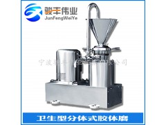 本机分立式、卧式、分体等各种规格。其主机部份由壳体、动磨片、静磨片、调节机构、冷却机构、机械密封、电机等组成。其主要零件均采用不锈钢制造,耐腐蚀,无毒。使用单位可依不同物料特性,生产效率,不同用途,选用不同规格型号的胶体磨,使之达到良好的效果。