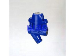 蒸汽疏水阀安装在蒸汽加热设备与凝结水回水集管之间。开启时,桶在底部,阀门全开。凝结水进入疏水阀后流到桶底,充满阀体,全部浸没桶体,然后,凝结水通过全开阀门排至回水集管。蒸汽也从桶体底部进入疏水阀,占据桶体内的顶部,产生浮力。桶体慢慢升起,逐渐向阀座方向移动杠杆,直到完全关闭阀门。空气和二氧化碳气体通过桶体的排气小孔,聚集在疏水阀的顶部。从排气孔排出的蒸汽,都会因疏水阀的散热而凝结。当进来的凝结水开始充满桶体时桶体开始对杠杆产生一个拉力。随着凝结水位不断升高,产生的力不断增加,直到能够克服压差,打开阀门。疏水阀阀门开始打开,作用在阀瓣上的压差就会减小。桶体将迅速下降,使阀门全开。积聚在疏水阀顶部的不凝性气体先排出,然后凝结水排出。水流从桶体流出时带动污物一起流出疏水阀。凝结水排放的同时,蒸汽重新开始进入疏水阀,新的一个周期又开始了。