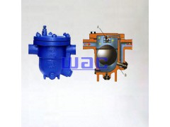 蒸汽疏水阀安装在蒸汽加热设备与凝结水回水集管之间。开启时,桶在底部,阀门全开。凝结水进入疏水阀后流到桶底,充满阀体,全部浸没桶体,然后,凝结水通过全开阀门排至回水集管。蒸汽也从桶体底部进入疏水阀,占据桶体内的顶部,产生浮力。桶体慢慢升起,逐渐向阀座方向移动杠杆,直到完全关闭阀门。空气和二氧化碳气体通过桶体的排气小孔,聚集在疏水阀的顶部。从排气孔排出的蒸汽,都会因疏水阀的散热而凝结。当进来的凝结水开始充满桶体时桶体开始对杠杆产生一个拉力。随着凝结水位不断升高,产生的力不断增加,直到能够克服压差,打开阀门。疏水阀阀门开始打开,作用在阀瓣上的压差就会减小。桶体将迅速下降,使阀门全开。积聚在疏水阀顶部的不凝性气体先排出,然后凝结水排出。水流从桶体流出时带动污物一起流出疏水阀。凝结水排放的同时,蒸汽重新开始进入疏水阀,新的一个周期又开始了。
