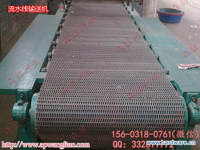 网带输送机是在规定线路上连续输送物料的物料搬运机械。网带输送机又称为连续输送机或者网带链板输送机,一般分为网带式和网链式。网带输送机应用广泛,其输送线路一般是固定的。一般情况下,输送机进行的输送方式是水平、倾斜和垂直输送,输送带可增设提升挡板、侧挡板。输送机但也可以组成空间输送线路。