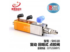 SH110提升式点胶阀具有回吸功能,能更有效的及时收胶,防止滴胶,拉丝现象。出胶口可以跟据需要加大