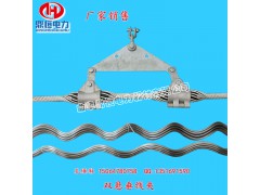 OPGW光缆双悬垂线夹是由:2套悬垂组件、橡胶夹块、三联挂板、内护线条、外护线条、接地线等组成的,铝套壳和护线条采用优质铝合金此材质,护线条具有很高的抗拉强度、硬度和良好的弹性以金属护套:铝合金悬垂组件采用高强度铝合金铸造件,具有良好的机械性能和抗腐蚀性能;