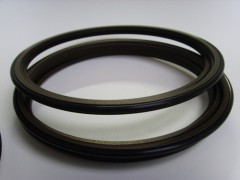 格莱圈由一个橡胶O型圈及聚四氟乙烯圈组合而成,材质为PTFE + NBR,特殊情况下橡胶弹性体丁腈胶NBR采用氟胶FKM。它可分为孔用格莱圈和轴用格莱圈,但其密封作用是一样的,依其本身的变形对密封表面产生较高的初始接触应力,阻止无压力液体的泄漏。液压缸工作时,压力液体通过O形密封圈的弹性变形始大限度地挤压方形密封圈,使之进口挡圈