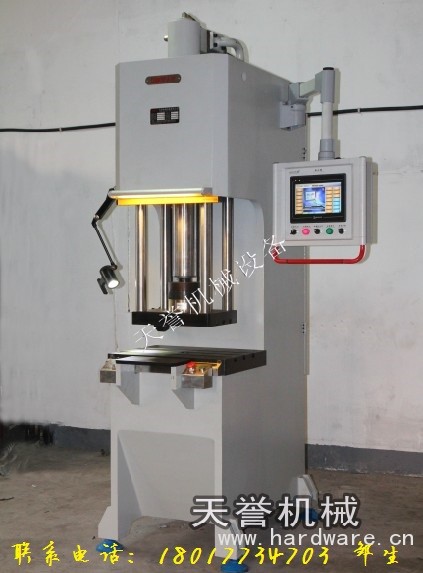 天誉机械压装机在对产品的压入过程中,实时显示当前压装位置、压装力,并及时准确的判断过盈量是否大小合适,同时显示出整个力与位移的压装曲线,很好的解决了传统压机只能压入不能检测、万能试验机效率低不能批量生产的弊端;设备整体结构均通过加强设计,刚性远超出一般普通压机标准,采取了整体防尘设计。