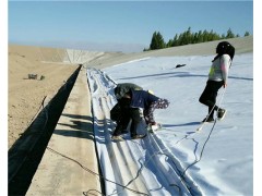 土工布的施工细则:在运输过程中土工布要避免受到物理的损坏。受严重磨损的土工布不能在工程中使用。在工程现场,土工布应该堆放于经平整不积水的地方,堆高不超过五卷的高度,并能看到卷的识别片。土工布用不透明材料覆盖以防紫外线老化。在储存过程中,要保持标签的完整和资料的完整。在土工布铺设时,检查基层是否平整、坚实,如有杂物,应及时处理妥善。根据现场情况,确定土工布尺寸,裁剪后予以试铺,用人工滚铺;布面要平整,并适当留有变形余量。在坡面上,对土工布的一端进行锚固,然后将卷材须坡面放下以保证土工布保持拉紧的状态。所有的土工布都须用砂袋压住,砂袋将在铺设期间使用并保留到铺设上面一层材料。土工布的接缝用搭接、缝合和焊接方法。缝合和焊接的宽度一般为10厘米以上,所有的缝合要连续进行。同时采取相应的措施避免土壤、颗粒物质进入土工布层。
