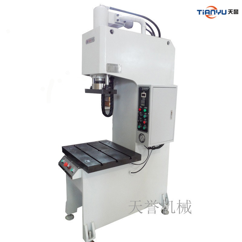 1、单柱油压机结构为采用单柱焊接结构特点为占用空间小,机神钢性十足,节省空间。油缸行程250mm,调整行程方便。