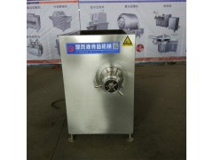 我厂生产的绞肉机采用304不锈钢加工制造,做工精细,边缘倒角圆滑,密封性能好,纹理清晰,线条流畅;传动部件采用变速箱传动,使用寿命长,绞碎力度大,加长绞龙,动力加倍,绞肉先经过预切板、十字刀、圆刀,更大程度上减轻了十字刀和圆刀的工作压力,降低了易损件的磨损程度,同时使绞肉更顺畅;电源控制设计了正反点动开关,使冻肉进退自如,可防止堵塞,减少电动机超负荷工作的可能,延长电机使用寿命!