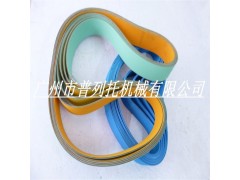 普列托系列尼龙片基传动带以尼龙片基为抗拉层,外层采用耐磨橡胶或络鞣皮革,中间结合层为高强聚酰胺织物,具有强度高、伸长小、曲挠性好、传动平稳、缓冲吸震、摩擦系数高、耐磨耐油性好、防静电、传递效率大等作用。