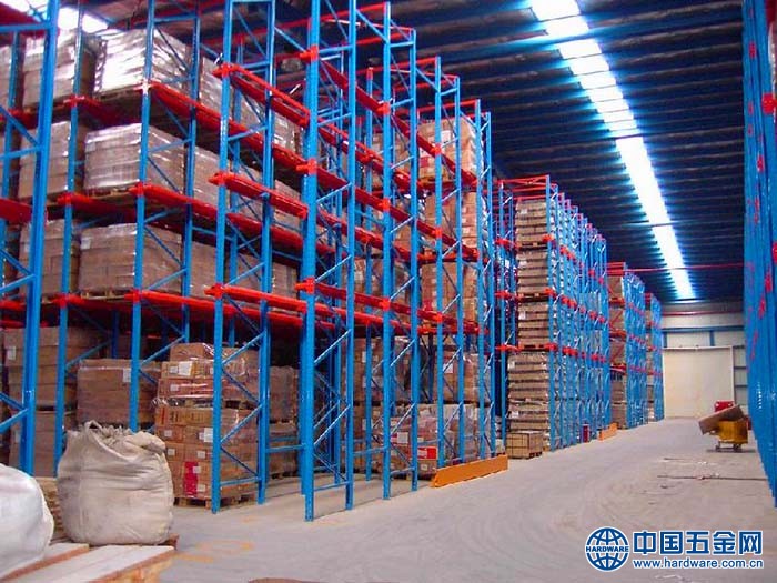 1、叉车可以开入巷道内存放托盘。