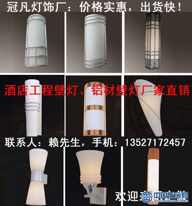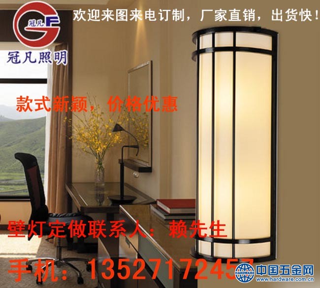 冠凡壁灯产品专为酒店,别墅宴会酒吧ktv、行政客房、酒店客房,浴场会所,商务会展中心,会所餐厅,园林广场,旅游景点,中高档住宅配套,可提供壁灯设计、加工、安装一条龙服务。可根据客户的要求来图来样加工定做。欢迎各界朋友光临指导,价格便宜、厂家直销、来图定制、出货快!