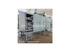 干燥箱内有多组往返运行的不锈钢输送带,箱壳由内置保温材料组成。物料经输送装置送入干燥箱顶层输送带上,上下相反方向回转。物料自上层依次落至下层,由Z后一层输送带自出料口卸出。