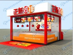 五、售货亭正面设有一卷帘门,且设有专用售货办公台(含收银抽屉),其余三面采用封闭式结构,外附带广告灯箱,整体设计美观大方。