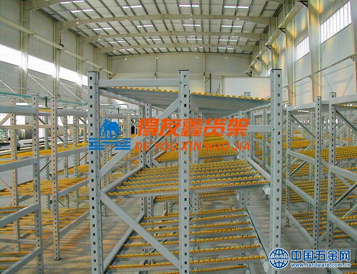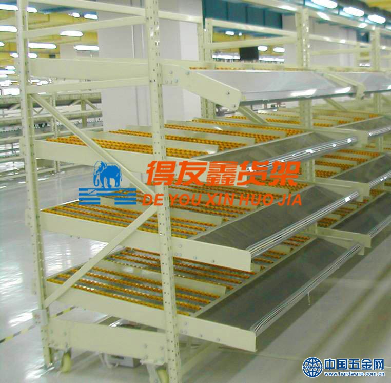 1.将货物置于滚轮上,利用一边通道存货,另一边通道取货。