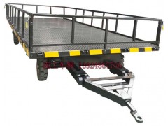 1.载重5吨,尺寸长5.5米、宽2.3米,主梁用8号型钢,台面铺4MM花纹板,车身前端带0.5米可折卸式护栏,左右及车尾带0.5米翻转式护栏;